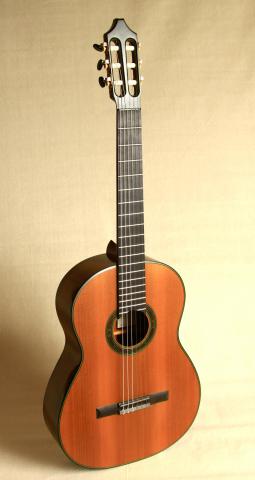 This is a Recitalist Supreme model made about 7 years ago. The Recitalist Supreme model was introduced in 1987 and has been my highest concert model with aged Master grade Brazilian rosewood, and matching Brazilian rosewood neck. The rosewood neck is not only very smooth and easy - almost sensual - to play but the stiffness and higher density of the rosewood enhances the quality of the tone and sustain of the notes. While the body is lacquered this rosewood neck is lightly oiled with a very natural feel.